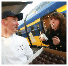 VLIJMEN - Bakkerij Vermeulen&Den Otter verraste dinsdagochtend de treinreizigers op het Centraal Station in Den Bosch op Bossche bollen.